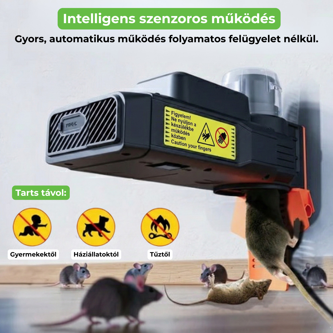 - Biztonságos: Méregmentes mechanika. Zárt kialakítása miatt a háziállatok mancsát nem, csak a rágcsálókat éri el.