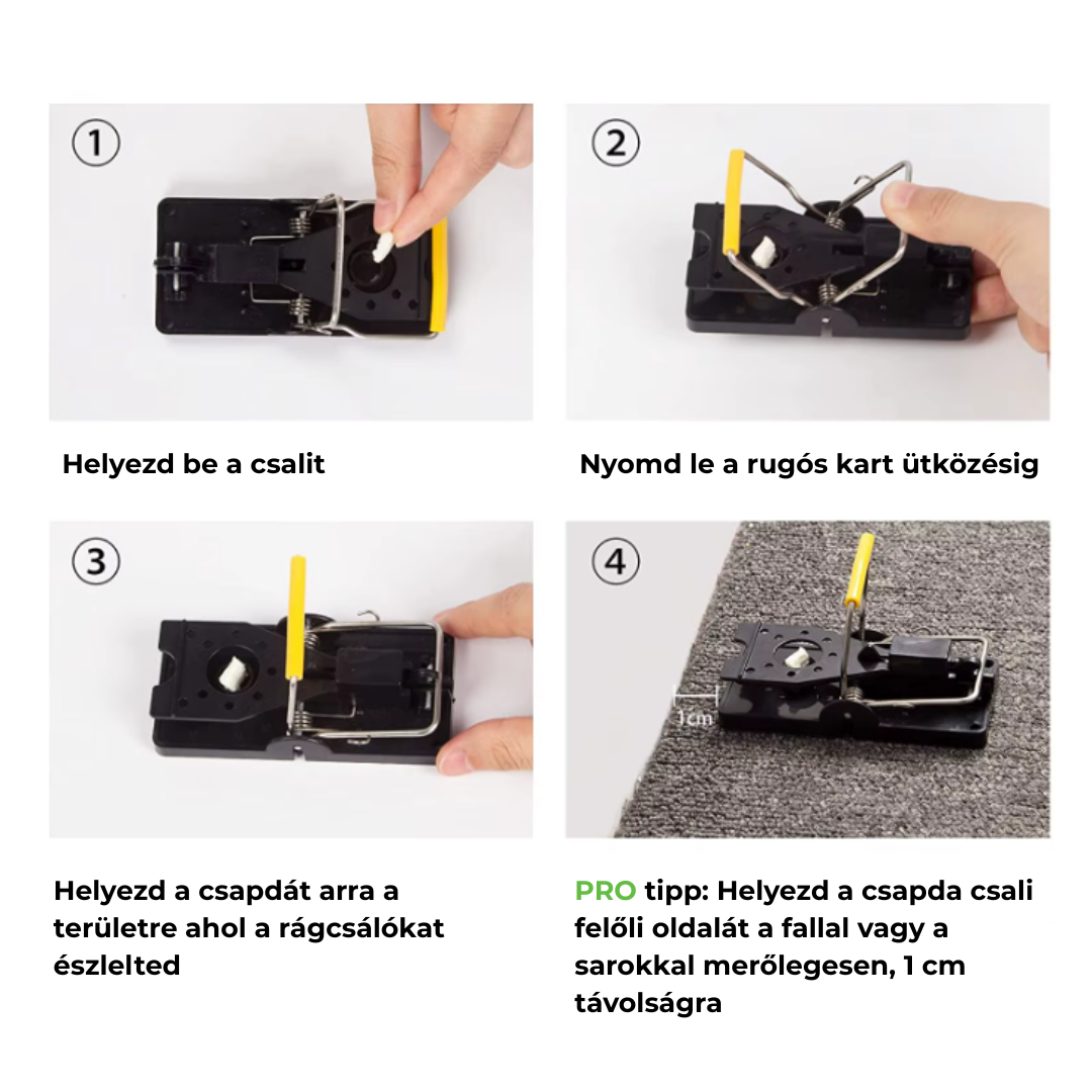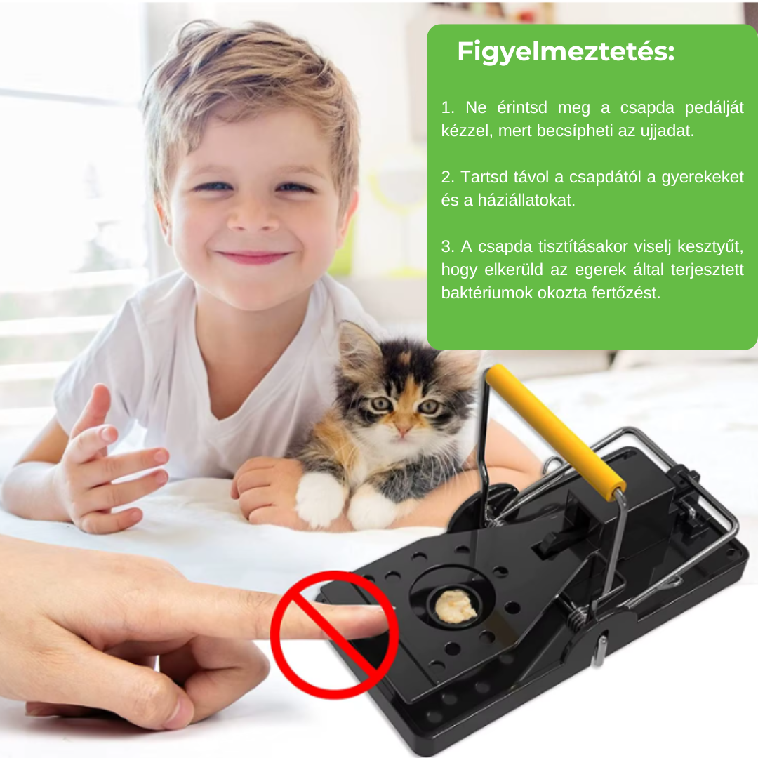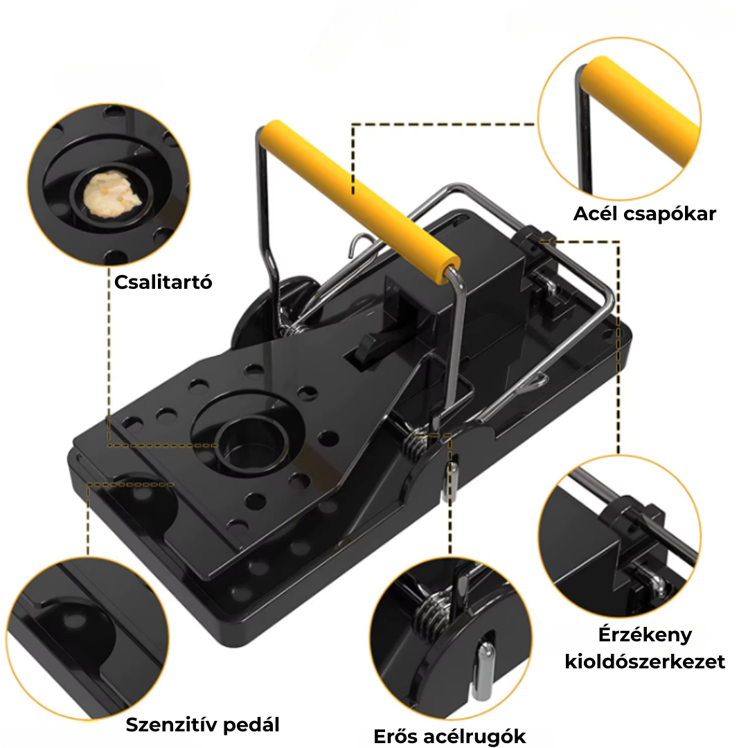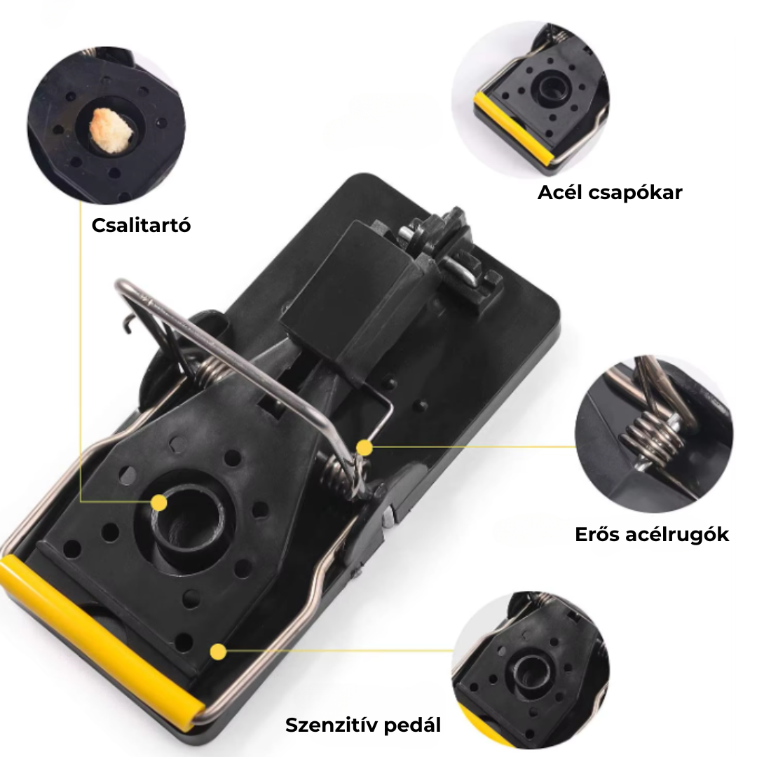 A régi, fából készült csapdákkal szemben ez a modern patkányfogó erősebb, pontosabb és sokkal tisztább használatot kínál. A precíz kioldó mechanizmus megbízhatóan működik, így hatékonyan segít visszaszerezni az irányítást az otthonod vagy munkahelyed felett.